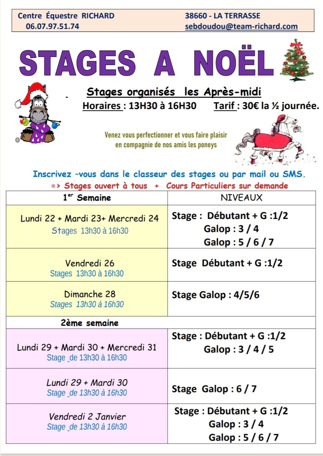 Attention A NOËL stage que les Aprés-midi.
